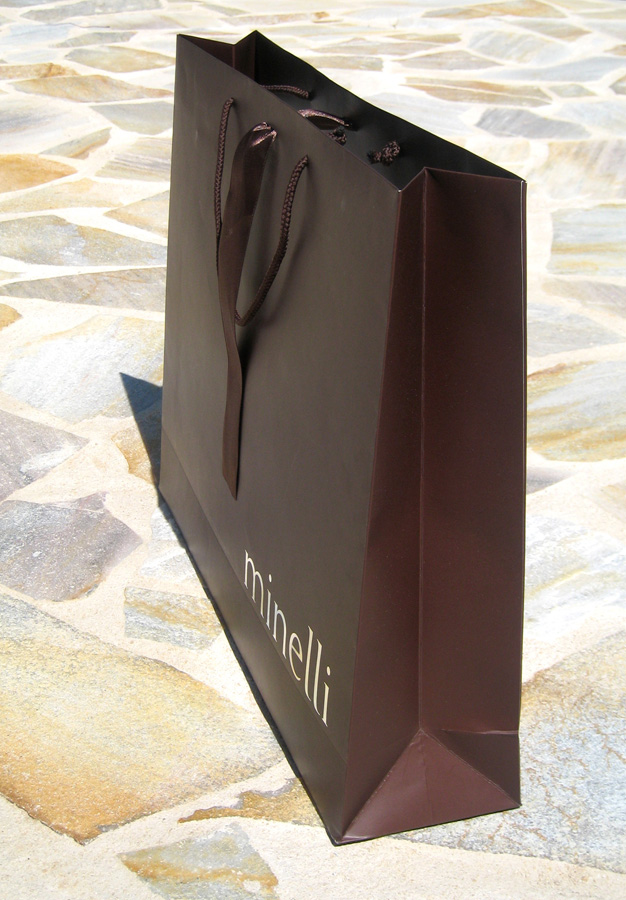 Modèle réalisé pour un ClientSac en Papier 210 grmsFond et Bord Haut en 350 grms (renforcement)Coloris au choixTaille d'envrion 40 x 50 x 12 cmLogo par impression argentéRuban de 4 cm de large